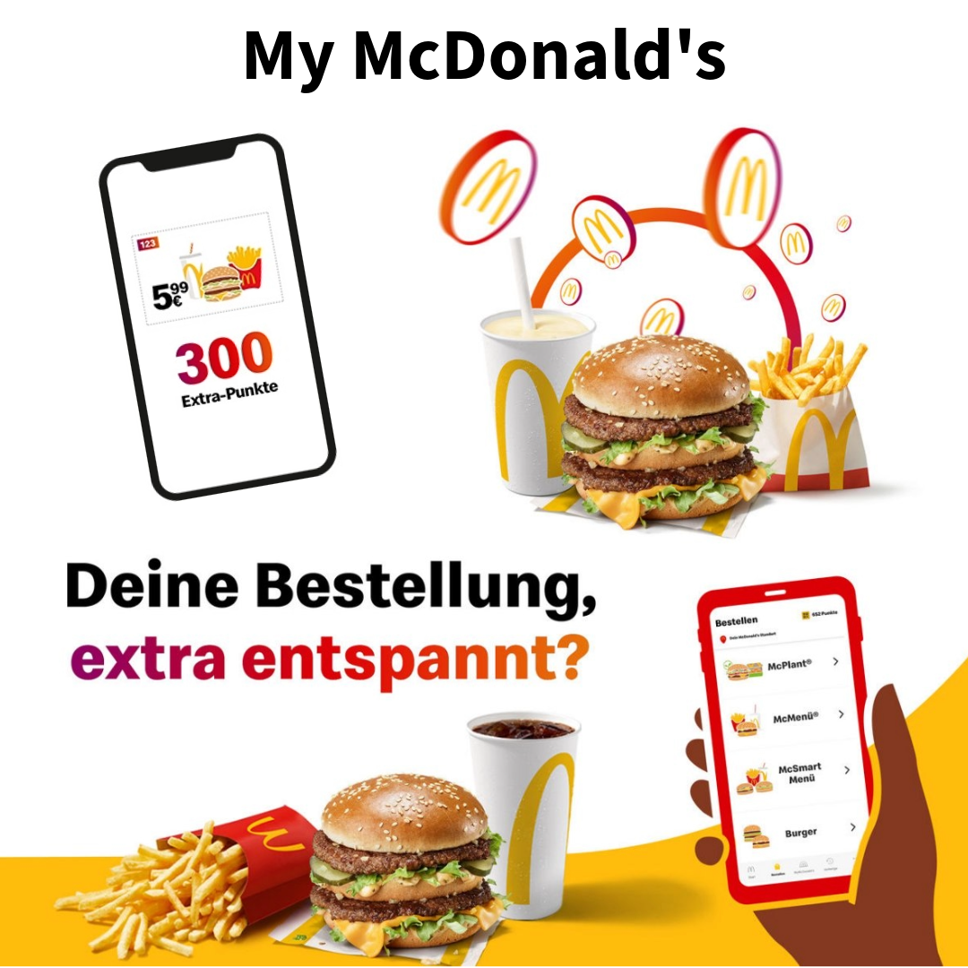 Lade dir jetzt die McDonald’s App herunter und genieße viele Vorteile, wenn du dich als User registrierst, z.B. exklusive Coupons oder Punkte mit unserem Bonusprogramm.
